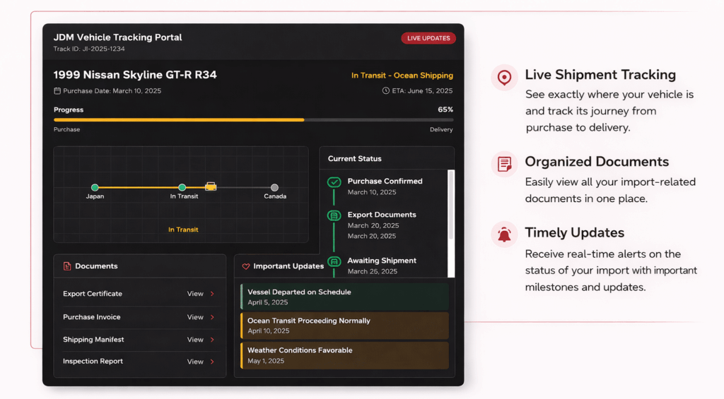At Jurojin JDM Imports, we keep you updated every step of the way, ensuring a smooth and stress-free experience.